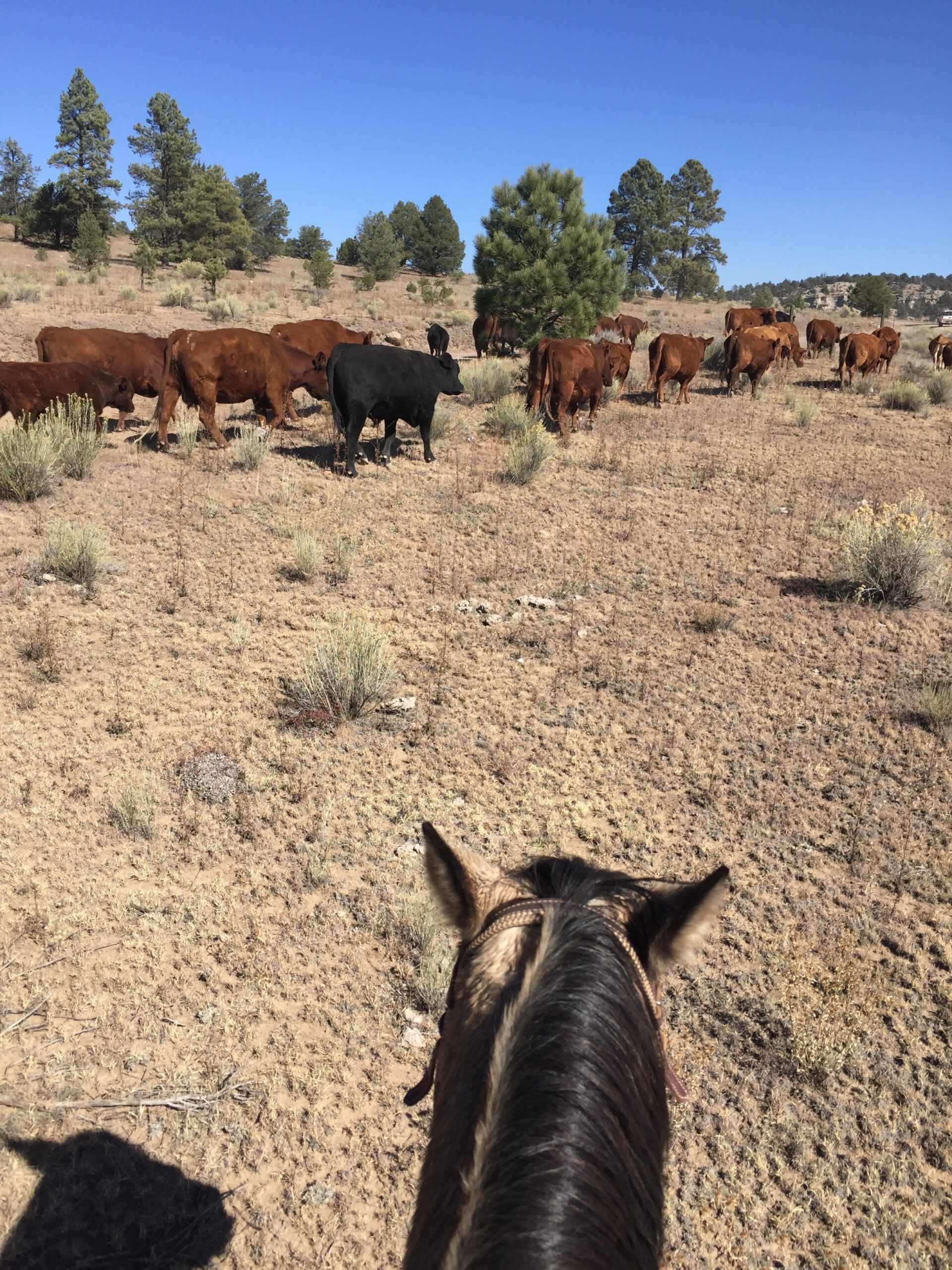 Lottie came from Triple S Morgans as a yearling. We have considered ourselves blessed with each Triple S horse we have bought, but Lottie really stands out. She is one of the kindest horses you can imagine, built like a tank, with an excellent work ethic. While she only stands 14 hands, she makes up for it with her heart and cow savvy. She is a smart and people-oriented mare and produces super trainable horses.